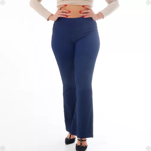 Calça Flare Cintura Alta Malha Canelada Feminina Bailarina
